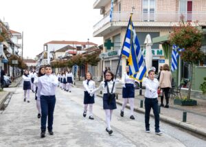 Μετά την τήρηση ενός λεπτού σιγής, ακολούθησε η ανάκρουση του Εθνικού Ύμνου από τη Φιλαρμονική του Δήμου, ενώ οι εορταστικές εκδηλώσεις κορυφώθηκαν με την καθιερωμένη μαθητική παρέλαση. Συμμετείχαν μαθητές και μαθήτριες όλων των βαθμίδων εκπαίδευσης, καθώς και μέλη του Μορφωτικού Συλλόγου Σοφάδων, του Πολιτιστικού Συλλόγου «Το Χοροπάτημα» και του Συλλόγου Γυναικών Σοφάδων. Την παρέλαση ολοκλήρωσαν με άψογο σχηματισμό τα μηχανοκίνητα οχήματα της Ελληνικής Αστυνομίας και του Πυροσβεστικού Σώματος.